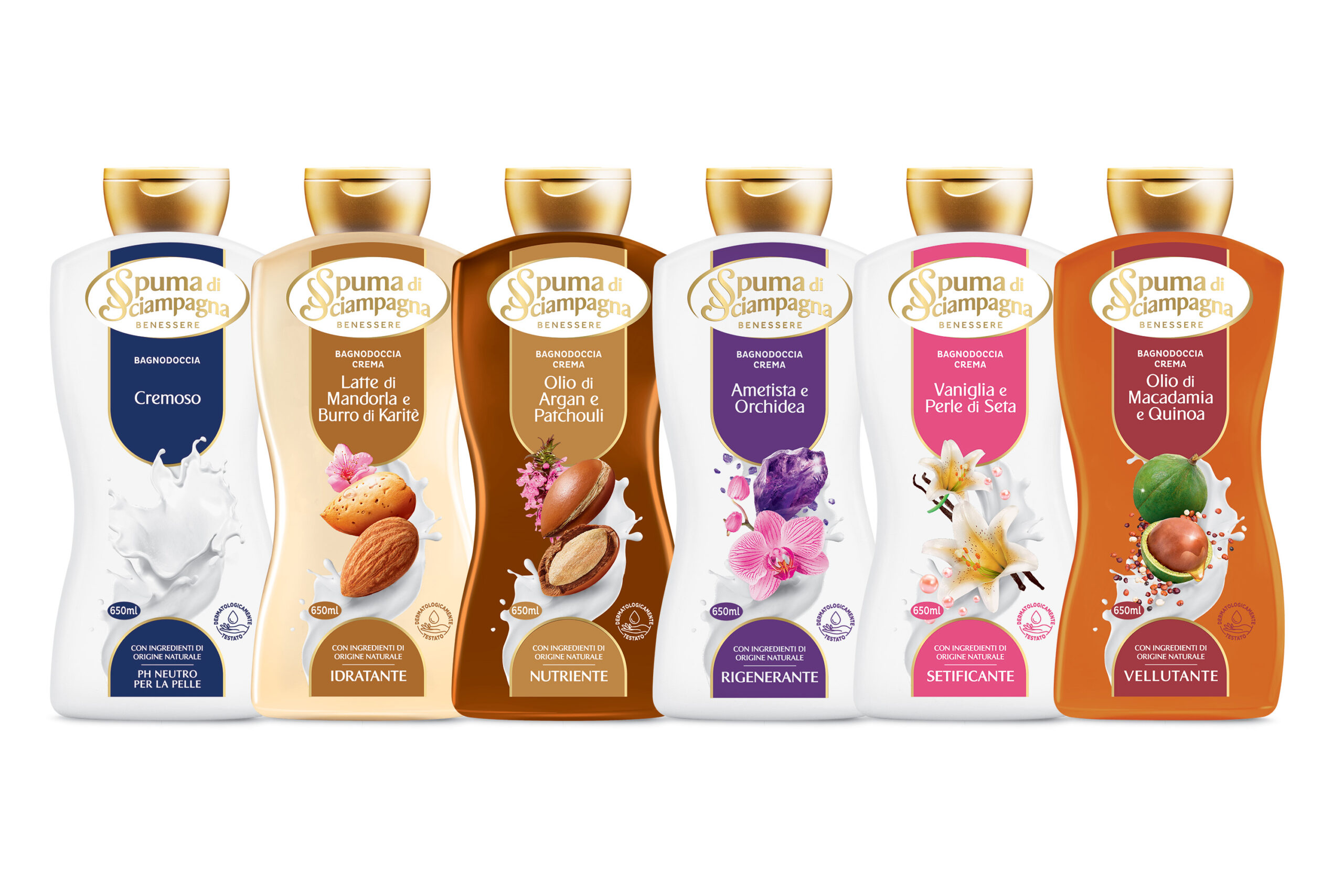 Spuma di Sciampagna rilancia la linea Bagnodoccia Crema con un’immagine nuova che trasmette la delicatezza e cremosità della sua formula arricchita con ingredienti di origine naturale:
