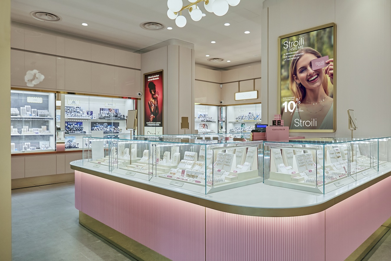 Inoltre, già da tre anni il brand ha debuttato con un pink concept, capace di riassumere l’essenza attrattiva della gioielleria moderna puntando sui toni accoglienti del rosa uniti alla luminosità dei lampadari e dei led che amplificano la brillantezza delle collezioni in oro e diamanti, della ricca proposta di fedi, dei gioielli in argento accanto a quelli di tendenza e degli orologi.