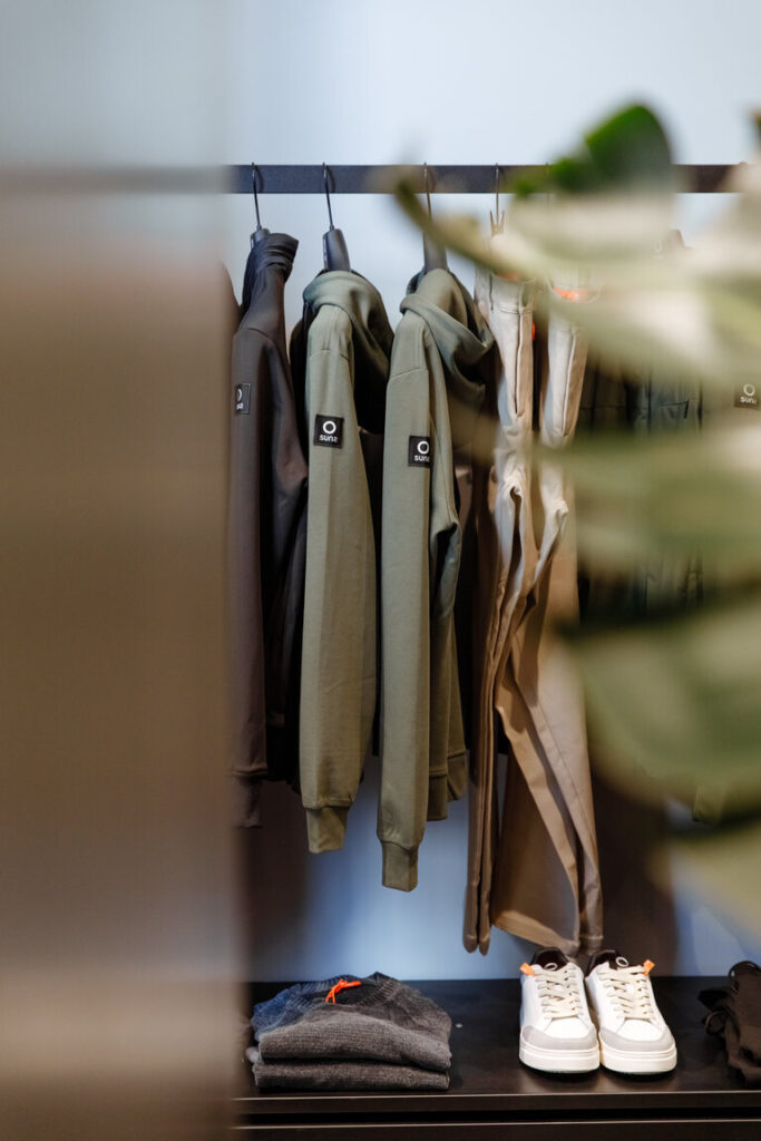 Il nuovo store SUNS offre un’esperienza immersiva nel cuore del brand. Gli interni, in linea con i valori di minimalismo ed essenzialità, combinano elementi in ferro laccato nero e tonalità grigio chiaro per creare un ambiente elegante e accogliente. Due ampie vetrine assicurano luminosità, mentre l’insegna sulla facciata esterna dona un tocco raffinato e coerente all’identità del marchio.