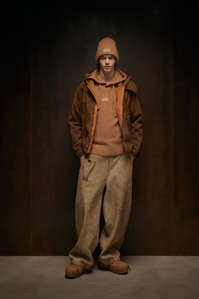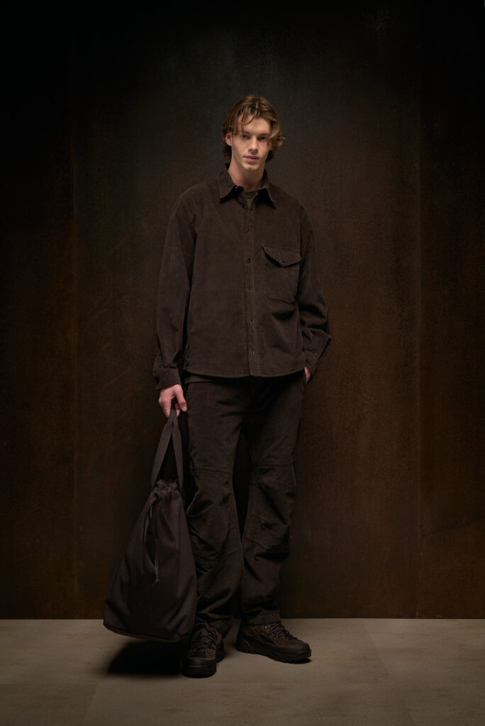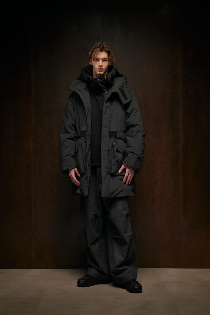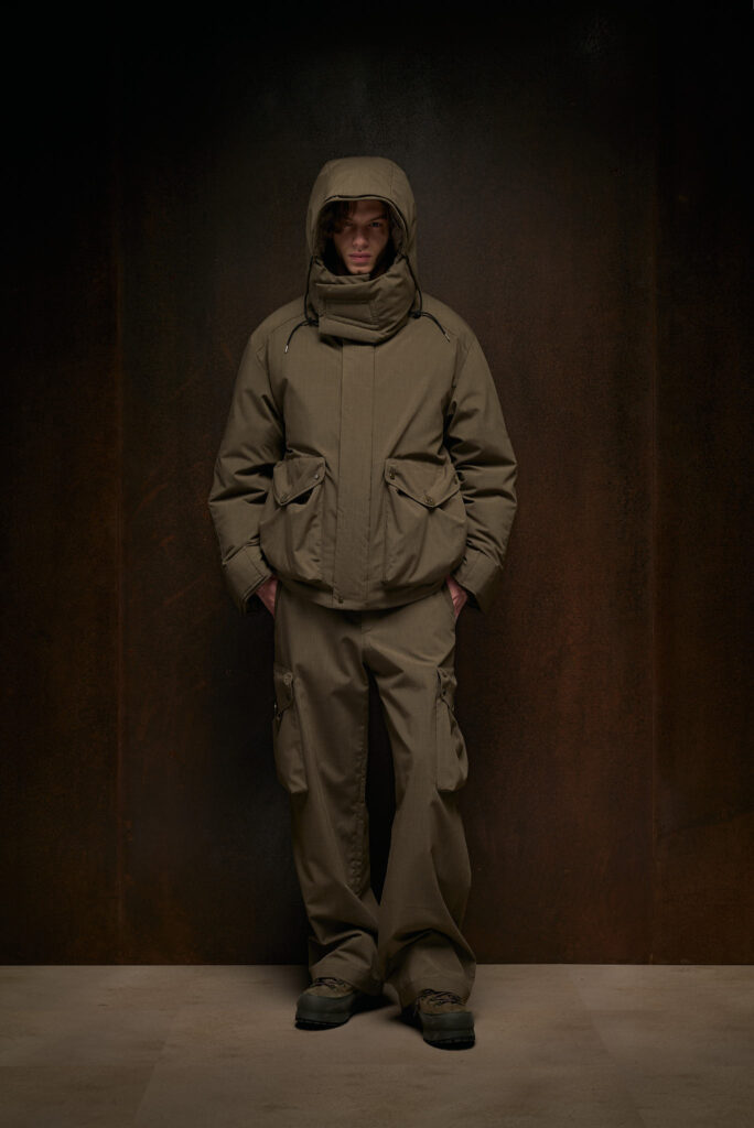 Lana, flanella e velluto, tutti tessuti storicamente associati al mondo del tailoring, vengono adattati al contesto tecnico del brand. Il risultato è una linea di capispalla e imbottiti che, pur conservando la sofisticatezza e la ricchezza dei tessuti tradizionali, sono progettati per offrire comfort e protezione anche nelle condizioni più impegnative.