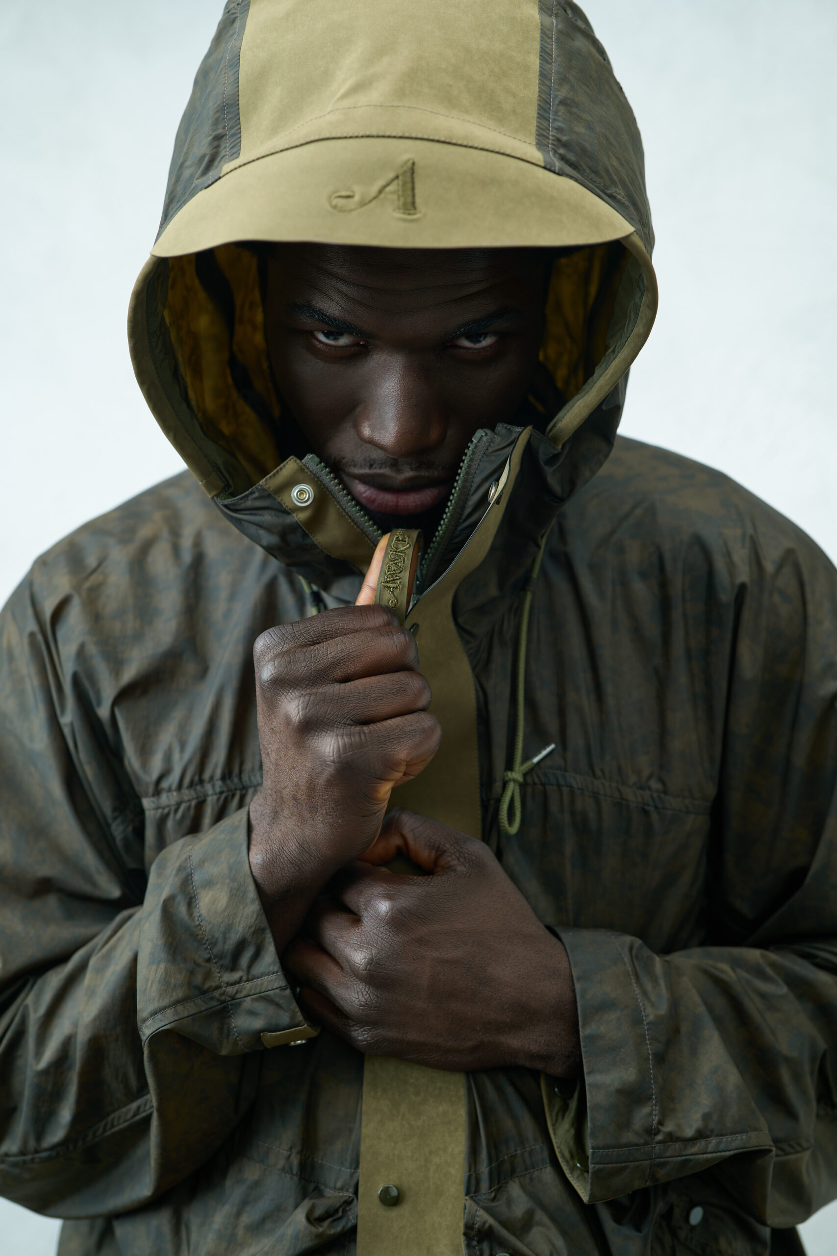 La linea è composta da tre pezzi iconici di Ten c presentati in due diversi colori, verde acido e verde militare. La giacca e il pantalone sono caratterizzati da una stampa che riproduce la mappa del substrato roccioso dei quartieri di Manhattan dando vita così ad un print camouflage originale e davvero unico. I materiali usati sono il nylon crinkle abbinato all’OJJ.
