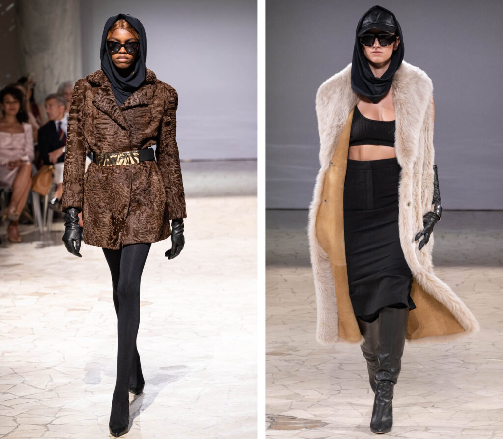 Capi di qualità non influenzati dalle tendenze di stagione, ma che rimangono sempre di tendenza grazie a un’estetica semplice e a uno stile caratterizzato da toni neutri con graffi di colore. Al centro della proposta, materie prime di qualità, linee strutturate e, soprattutto, amore per i prodotti di nicchia. Il focus è tutto sui dettagli come le sapienti filettature che uniscono pelli diverse giocando su pesi e volumi, (Amadei Andrea), i giacchini cropped che creano silhouette disegnate sull’effetto “puffed” del sopra (Bertoletti 1882), la sapienza del colore sulle pelli più preziose, per interpretare con ironia il mood golden age (FabrizioFerrario Furs), la lineare essenzialità dei toni naturali delle scelte quiet luxury (Artico) e la raffinatezza etno-chic delle lavorazioni effetto tricot (Pajaro).