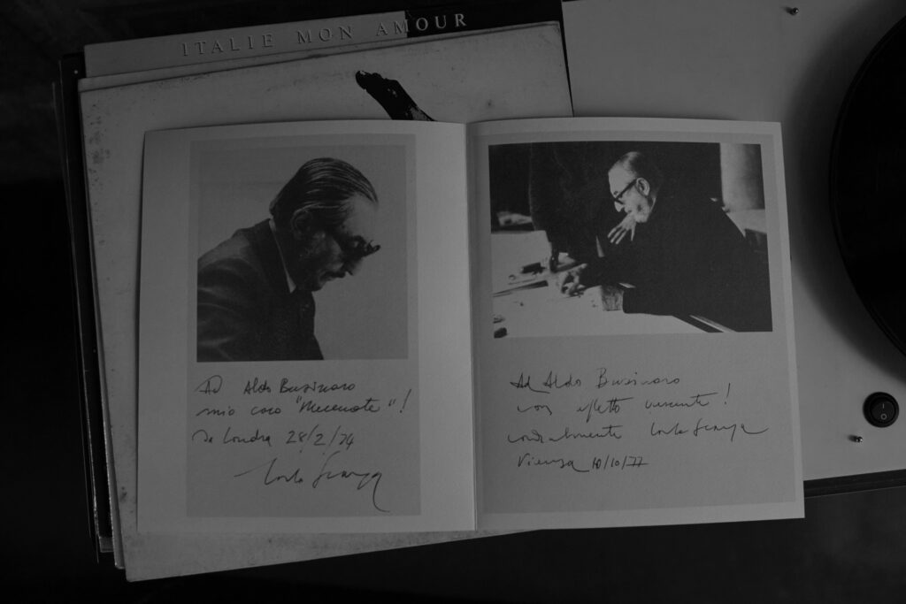 Aldo Businaro, imprenditore e ambasciatore del design italiano nel mondo, si trasferì a vivere nella Villa negli Anni Sessanta. “I lavori di ristrutturazione hanno richiesto tempi lunghissimi. I primi anni vivevamo tutti in una stanza, l’unica in cui non pioveva dentro” racconta Ferdinando. Una casa-manifesto che sigilla un’amicizia tra generazioni e famiglie e che rappresenta anche quell’arte del ricevere che così ben riassume lo stile di vita italiano.