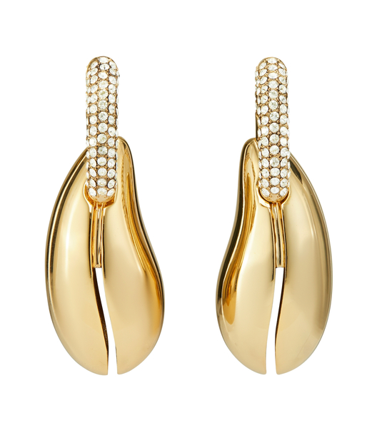 Shoulder dusters: catene lunghissime e orecchini pendenti che sfiorano le spalle: linee fluide che allungano la figura e donano un’aura di sofisticata leggerezza. Perfetti per accompagnare look da sera e silhouette essenziali.