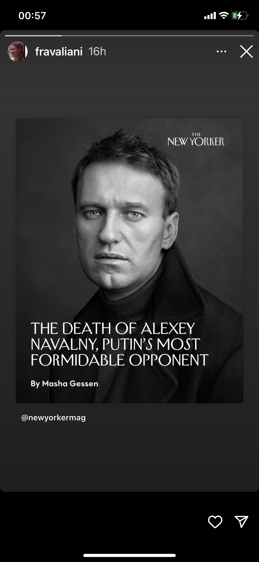 Chiudo con un messaggio, che magari vi aiuterà a prendere meno sul serio tutto questo bellissimo ed affascinante circo, quello che Alexel Navalny, il nemico di Putin trovato morto pochi giorni fa, ha lasciato nel suo documentario. ” Se dovessi essere ucciso non arrendetevi perchè vuole dire che siamo incredibilmente forti. L’unica cosa che serve al male per trionfare è che il bene non faccia nulla. Quindi non siate inerti”.