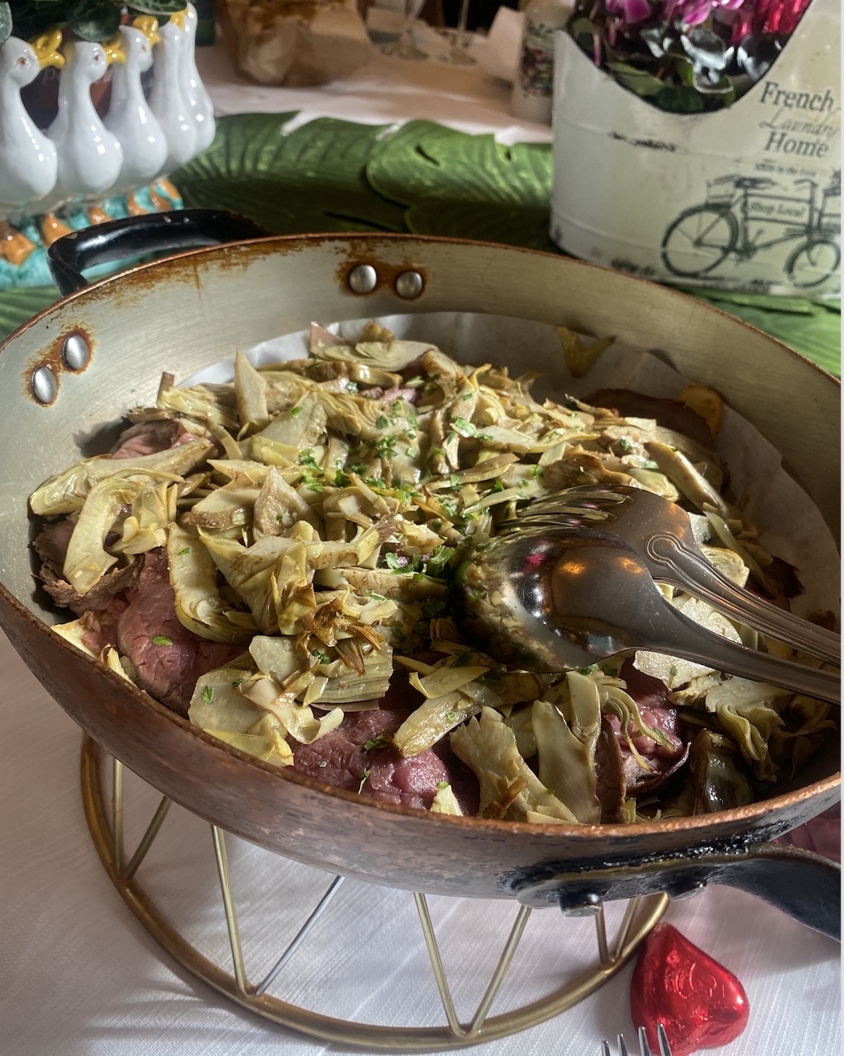 Io per non saper leggere ne scrivere ( lo dico per dire eh) ho usato l’intelligenza artificiale per fare la copertina del CHI E’ CHI della moda versione digitale che trovate qui nella newsletter e potete scaricare. Ho chiesto: creami una foto di una modella che scatta un servizio di moda a Milano con un abito Made in Italy. Questo il risultato. Ora non so forse è una schifezza ma era per farvi vedere che a volte l’ AI serve per avere “meno sbatti” ma siamo sicuri che il risultato poi sia comunque soddisfacente? Ditemelo voi. Di sicuro l’intelligenza artificiale non la si può utilizzare per cucinare ed è per questo che io amo i menù tradizionali senza troppe inventive, come le cose che mangio a La Briciola da sempre. Proprio l’altro giorno ero li per un lunch organizzato da Domenico Zambelli per la make up artist Benedetta Riccio che era reduce dai successi di Sanremo dove, oltre ai tanti cantanti, ha truccato Giovanna Civitillo moglie di Amadeus, entrambe napoletane veraci e solari. Abbiamo mangiato i mondeghili che sono le polpette tipiche milanesi e la tagliata con i carciofi e poi sono arrivati tutti i barattoli pieni di dolci come da tradizione. Si perchè io a La Briciola ci vado da quando sono una ragazza, Gianni il proprietario lo incontravo anche in Sardegna e qualche volta ha giocato a tennis con mio padre. Lui e Stefania sono la vera anima di questo posto che resta vero perchè loro due seguono tutto nel minimo dettaglio e ti fanno sentire a casa.
