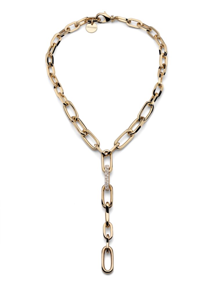 Classica: evolve nel segno della continuità e della ricerca. Nuove proposte che rileggono l’estetica della catena, uno dei codici più riconoscibili del brand, con volumi attuali, contrasti materici e proporzioni calibrate.