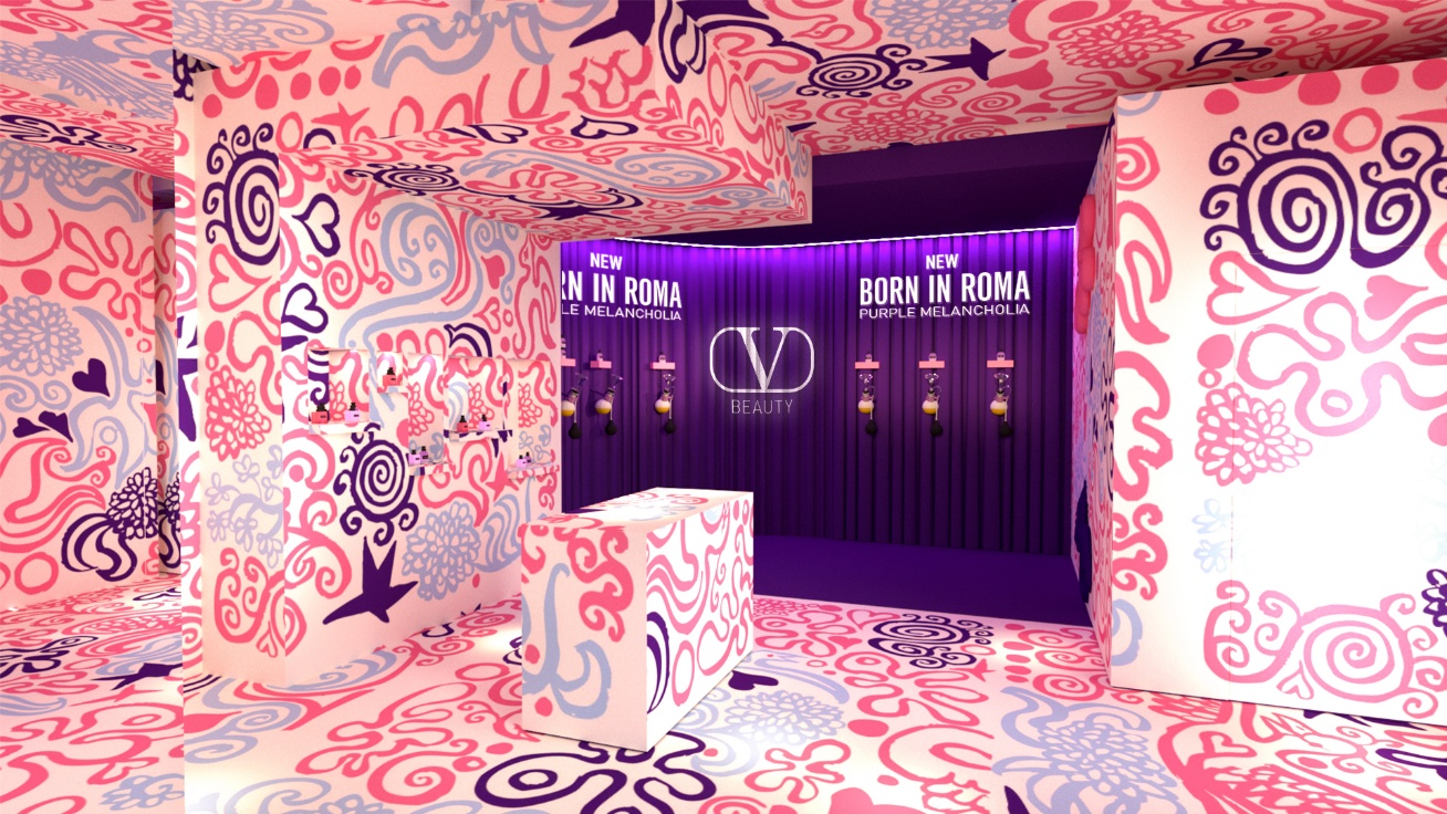 Il pop-up è dedicato alla scoperta della fragranza Born in Roma Purple Melancholia, duo olfattivo firmato Valentino Beauty che esplora la malinconia come fonte creativa e impulso per l’immaginazione.