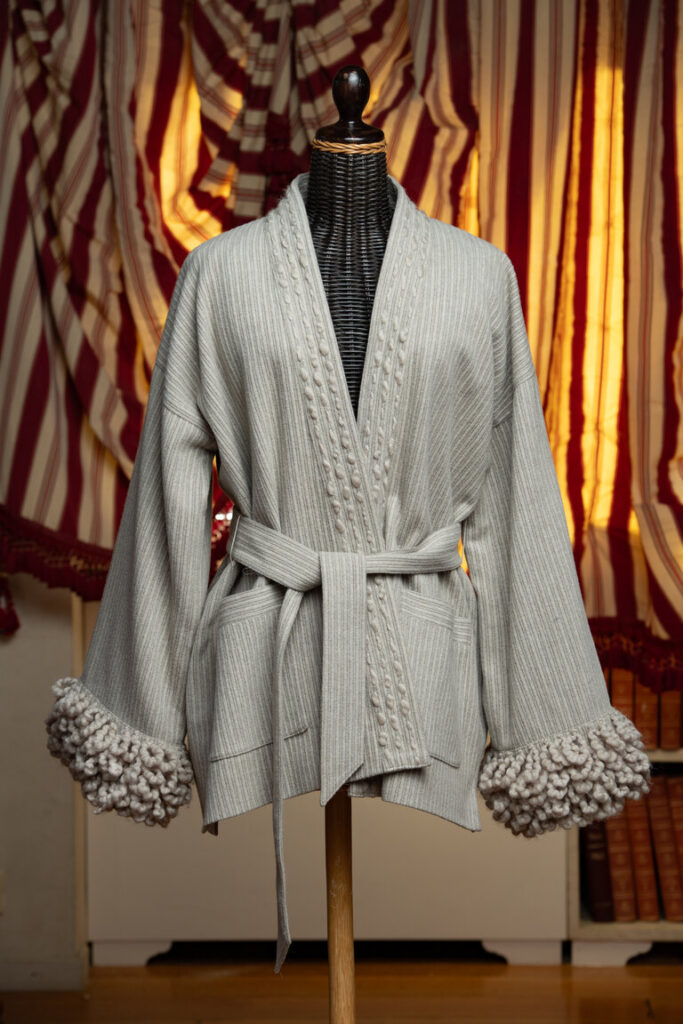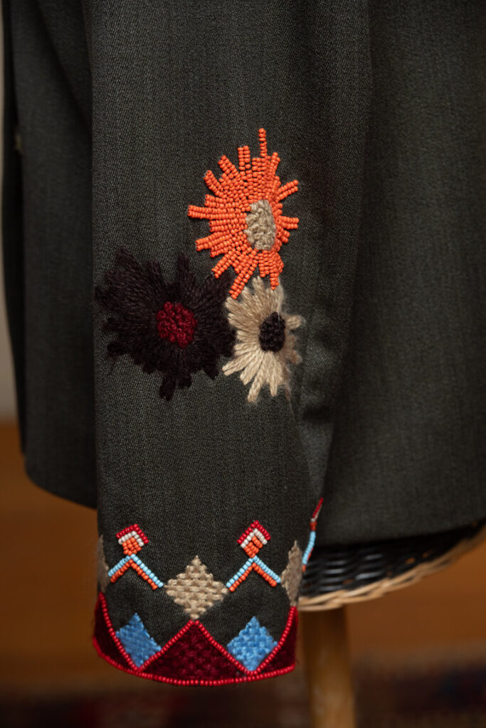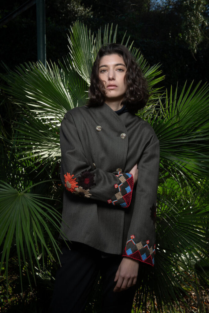 Camilla Cappelli, fondatrice di TAIEUR, dichiara: “Il ricamo su Lana rappresenta un ‘arte antica molto raffinata. La lana e specialmente la pregiata di Vitale Barberis Canonico essendo un materiale caldo e morbido, possiede una trama più aperta che può rendere il ricamo certo una sfida ma anche un’opportunità creativa. Da qui parte la lavorazione di TAIEUR andando a interpretare direttamente la trama del tessuto; i fili stessi della lana sono quindi utilizzati come guida “naturale” per il disegno del ricamo. Estrapolare i fili della trama permette di comprendere il ritmo e la direzione stessa del tessuto Vitale Barberis Canonico, facilitando la creazione di linee precise o motivi complessi. Questa tecnica permette di mantenere l’equilibrio tra il ricamo TAIEUR e la morbidezza dei tessuti italiani di eccellenza, valorizzandone la massima bellezza e qualità del Made in Italy per capi eleganti e soprattutto durevoli nel tempo”.