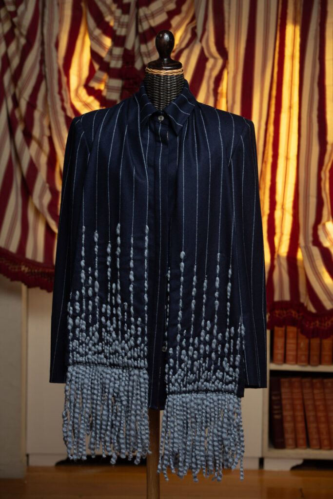 Francesco Barberis Canonico, direttore creativo di Vitale Barberis Canonico, dichiara: “Non potevamo immaginare che i nostri tessuti di drapperia maschile apprezzati in tutto il mondo si prestassero così bene a essere ricamati sapientemente dalle mani del brand Taieur”.