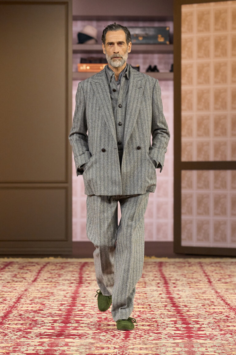 Per ZEGNA l’armadio non è un semplice spazio funzionale, ma uno scrigno di memoria, valori e continuità. È il luogo dove gli abiti custodiscono il tempo, accumulano tracce di vissuto e diventano testimoni di un dialogo silenzioso tra generazioni. Da questa visione nasce la collezione, ambientata in un armadio immaginario che raccoglie oggetti reali provenienti dal guardaroba di famiglia di Gildo e Paolo Zegna, membri della terza generazione: capi personali, abiti ereditati, pezzi carichi di storia.