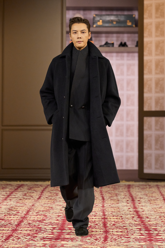( NELLA FOTO l’attore e cantante cinese William Chan debutta in passerella alla Milano Fashion Week Uomo come nuovo Global Brand Ambassador di Zegna , in occasione dello show Winter 26. Icona di stile internazionale e protagonista della serie virale Love Ambition, interpreta con naturalezza un’eleganza contemporanea e consapevole. In passerella indossa un car coat in doppio cashmere con spalle raglan, abbinato a un blazer doppiopetto sartoriale in lana mohair, polo in maglia di lana e carta e pantaloni sartoriali in lana mohair. A completare il look, mocassini in suede con fiocco e dettagli artigianali.)